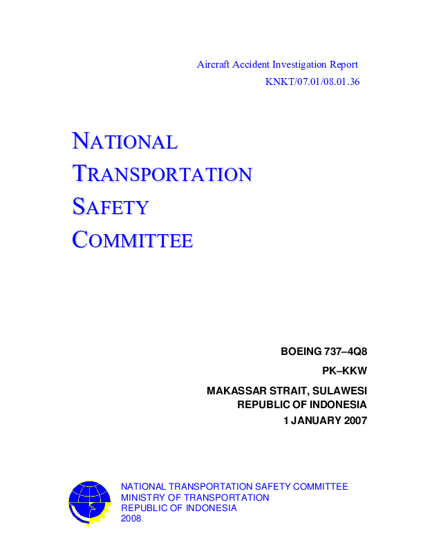 KNKT - Aircraft Accident Investigation Report (KNKT/07.01/08.01.36), Adam Air, LOC, 2007