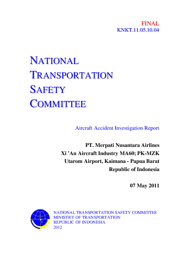 KNKT.11.05.10.04 - MA60 loss of control, Kaimana Republic of Indonesia, 7 May 2011