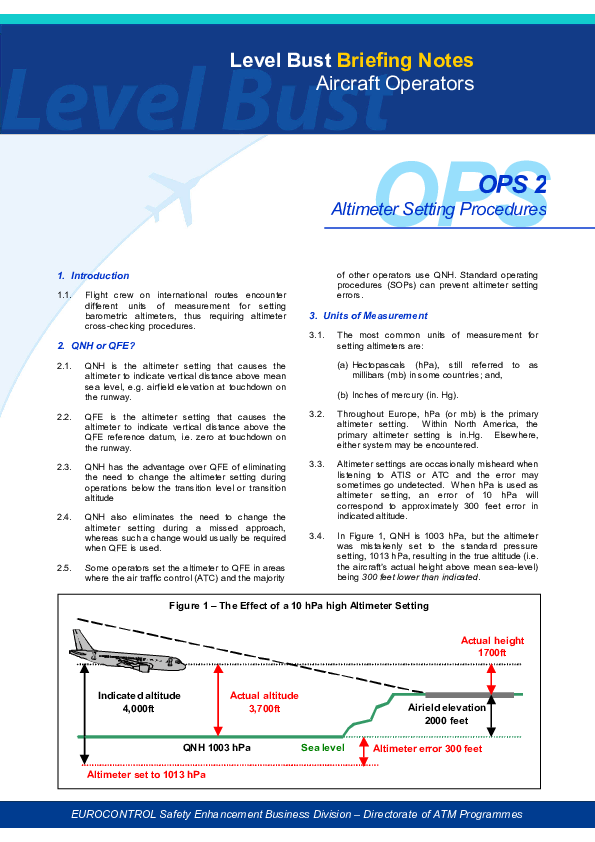 Level Bust Briefing Note Ops 2 - Altimeter Setting Procedures