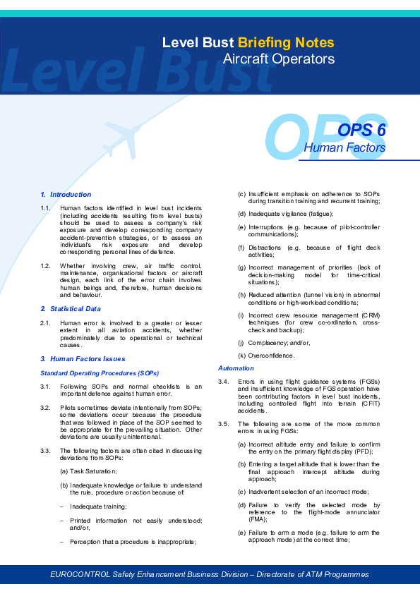 Level Bust Briefing Note Ops6 - Human Factors
