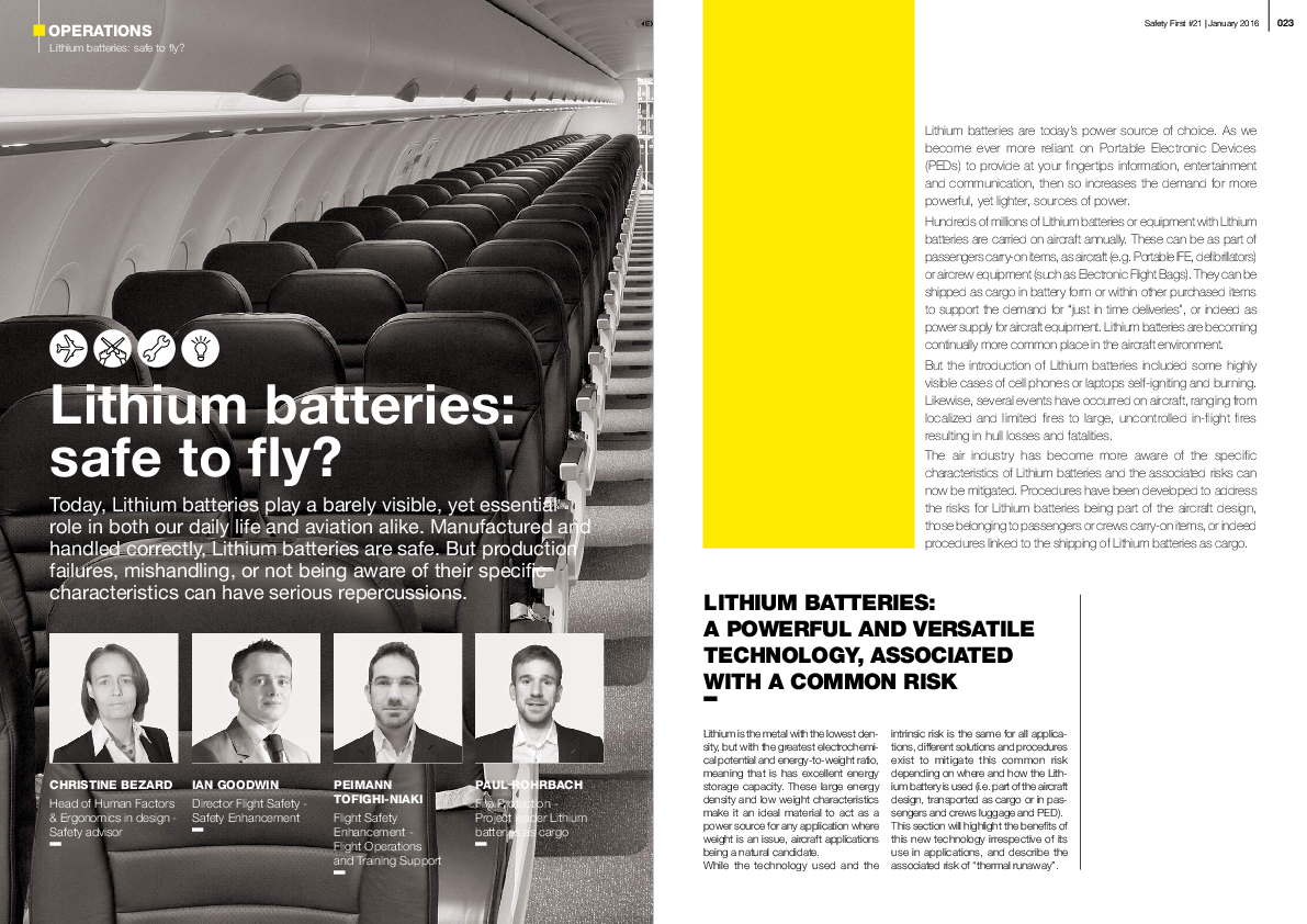 An article in the Airbus Safety First magazine, issue 21, about the risks, associated with air transportation of lithium batteries.