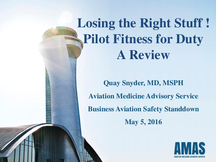 Losing the Right Stuff - A Review of Pilot Fitness for Duty