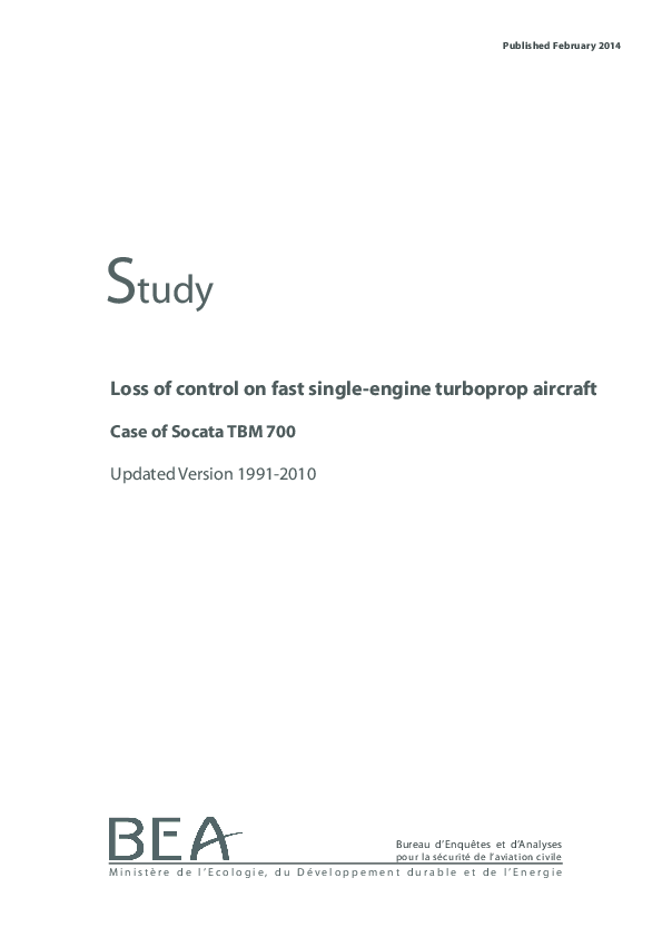 BEA France Safety Study Loss of control on fast single-engine turboprop aircraft - Case of Socata TBM 700 Updated Version 1991-2010