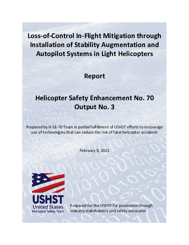 The USHST established H-SE 70: Stability Augmentation System (SAS) / Autopilot as a desired safety enhancement that recommended technology and equipment solutions to reduce fatal rotorcraft accidents