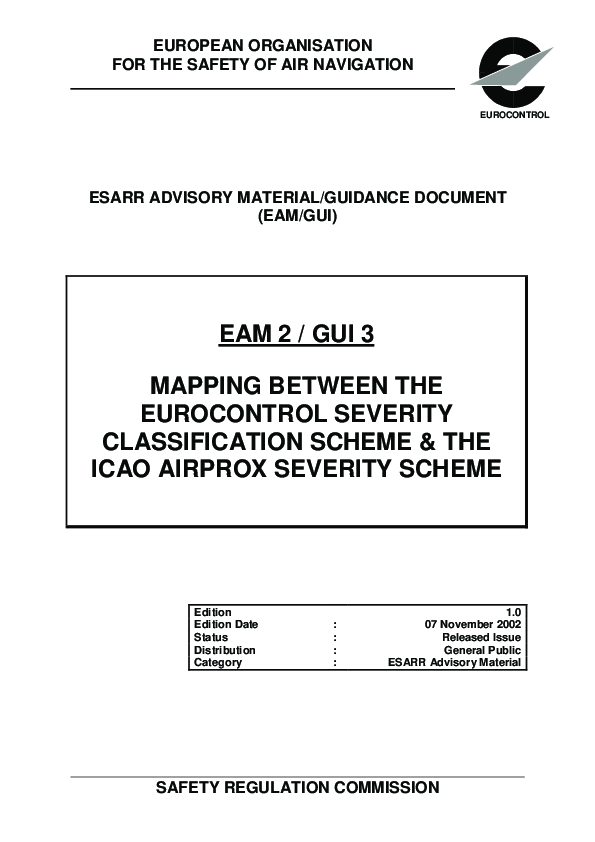 To reinforce the ICAO consistency, and to clarify further the Companion Document ESARR 2 COD 1 “Severity Classification Scheme, the attached mapping with the ICAO AIRPROX scheme, has been elaborated.