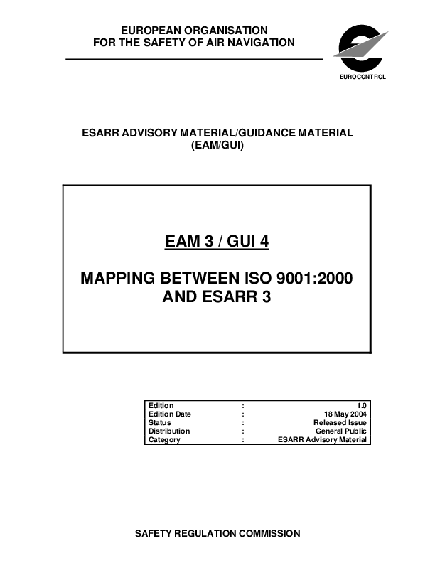 This document includes a detailed comparison between the provisions of ISO 9001:2000 and the safety regulatory requirements established in ESARR 3. It also provides ATM safety regulators with harmonised guidance that can be brought into play wherever there is a need for developing national regulatory material on the use of ISO 9001:2000 by ATM service providers to implement SMS.