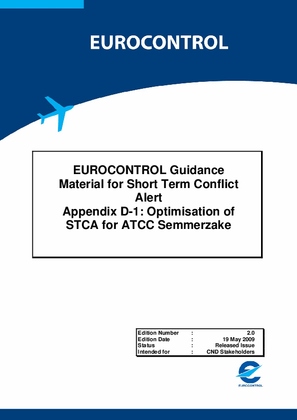 Material for Short Term Conflict Alert Appendix D-1: Optimisation of STCA for ATCC Semmerzake
