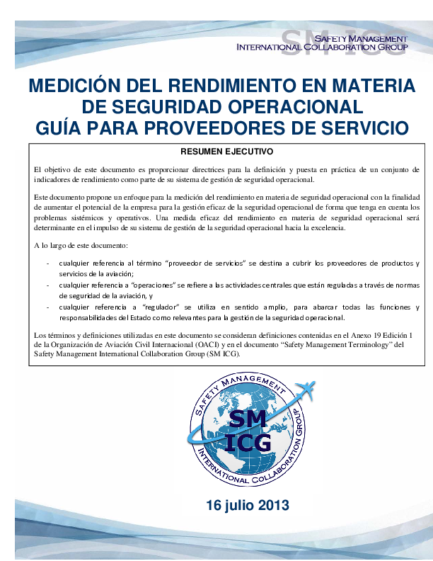 Measuring Safety Performance Guidelines for Service Providers - Spanish