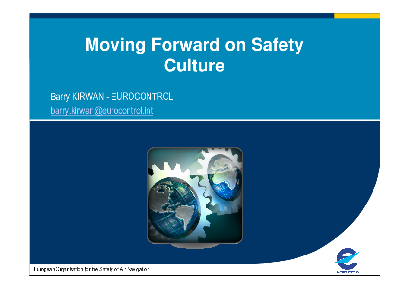 This presentation by EUROCONTROL describes the steps towards moving forward on safety culture: the process(prepare: consider benefits & costs, select approach: questionnaire) , getting started (preparing for implementation), next steps and support.