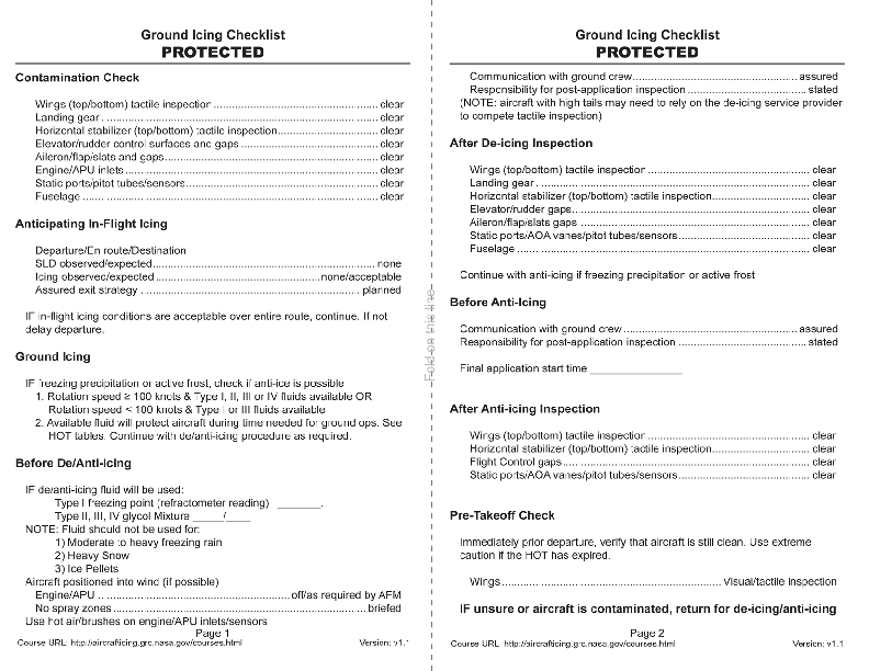 NASA - Pre-flight Icing Checklist