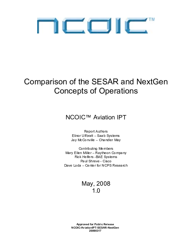 NCOIC Comparison of the SESAR and NextGen Concepts of Operations