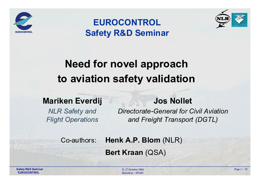 Air traffic expected to double in 20 years, requiring fundamental changes to the airspace structure and ATM. Timely and adequate involvement and investment is necessary by institutional parties, both at European and at National level. The need for a novel safety validation framework was accepted by 35th ICAO Assembly of 2004. To achieve international cooperation and acceptance, Eurocontrol, ECAC, EC and ICAO are actively involved.