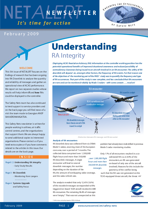 Fifth edition of the newsletter focuses on the findings of research that has been ongoing into RA Downlink to analyse the quantity and reliability of messages and gather an operational view of ACAS performance.