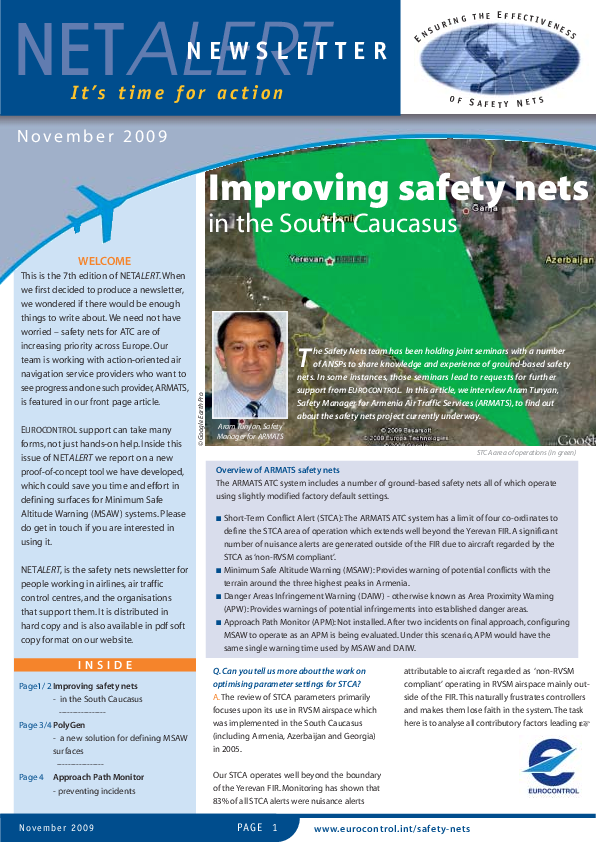 Seventh edition of the newsletter giving updates on the improving safety nets in the South Caucasus and 'PolyGen' the new solution for defining MSAW surfaces.