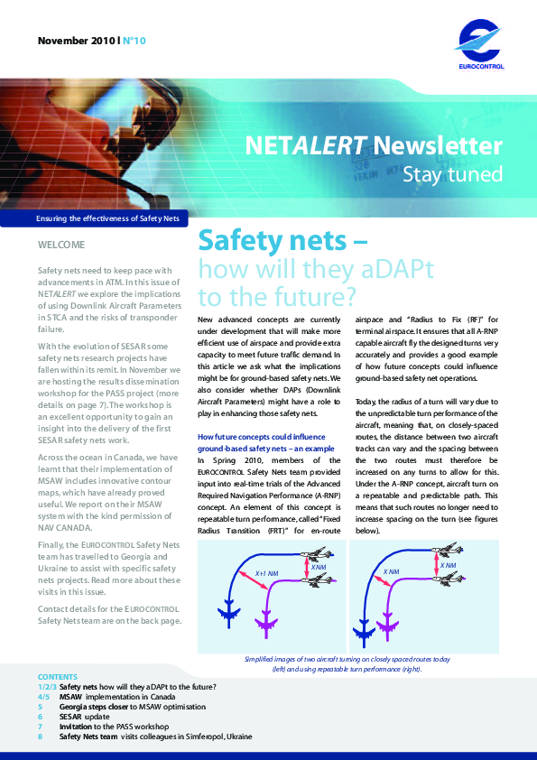 Tenth edition of the newsletter giving updates on the future adaptation of the Safety Nets and MSAW implementation in Canada.