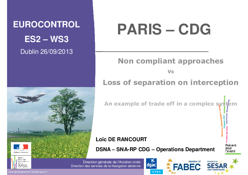 This presentation in an example of trade-off in a complex system, showing complex simultaneous approaches'rules, a comprehensive approach and the CDG's safety action plan.
