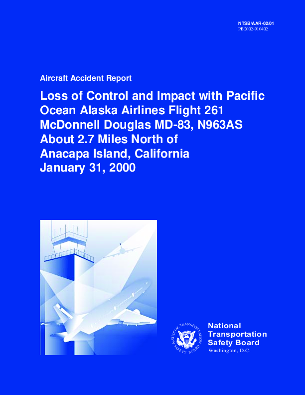 On 31 January 2000, an Alaskan Airlines MD83, crashed into the sea off the coast of California, USA, following loss of control attributed to failure of the horizontal stabiliser trim system.