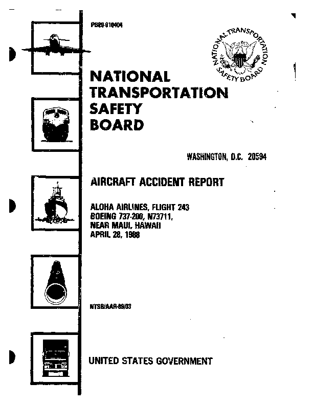 NTSB - AAR 89/03 Aloha airlines, B737-200 neear Maui, Hawaii, April 28, 1988