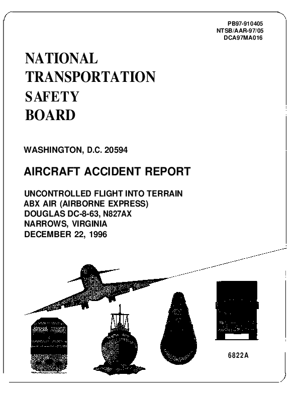NTSB - AAR-97/05 DC8 Uncontrolled flight into the terrain, Narrows VA, 22 Dec 1996