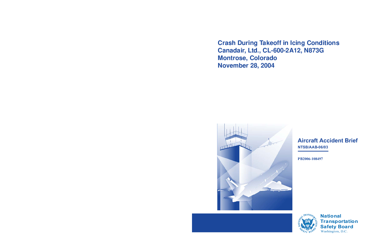 NTSB - Aircaft Accident Brief NTSB/AAB-06/03 CL60 take-off in icing conditions, Montrose CO, 28 Nov
