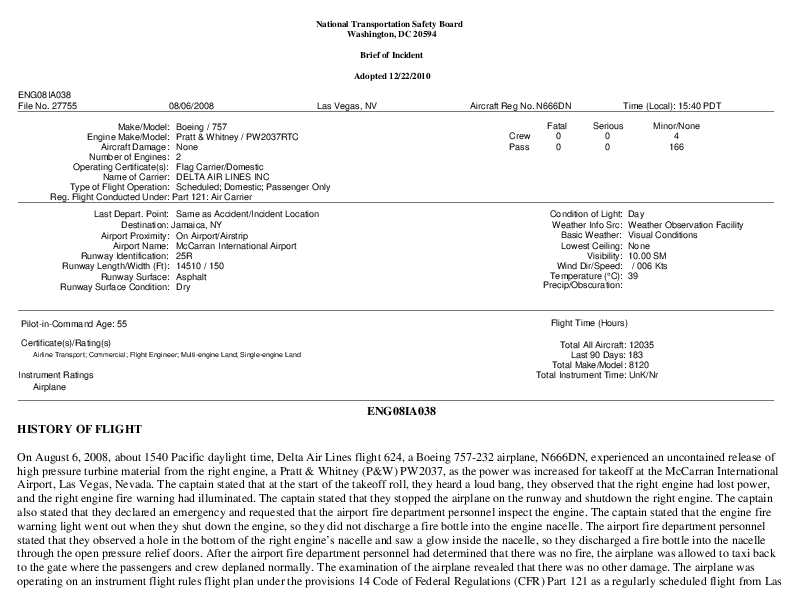 NTSB - ENG08IA038, B752 Engine failure, Las Vegas NV, USA, 22 Dec 2008
