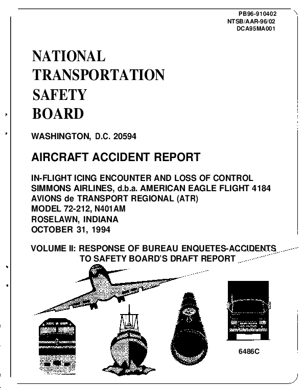 NTSB - In-Flight Icing Encounter and Loss of Control, Vol II, AT72 Simmons, Roselawn IN, 31 Oct 1994