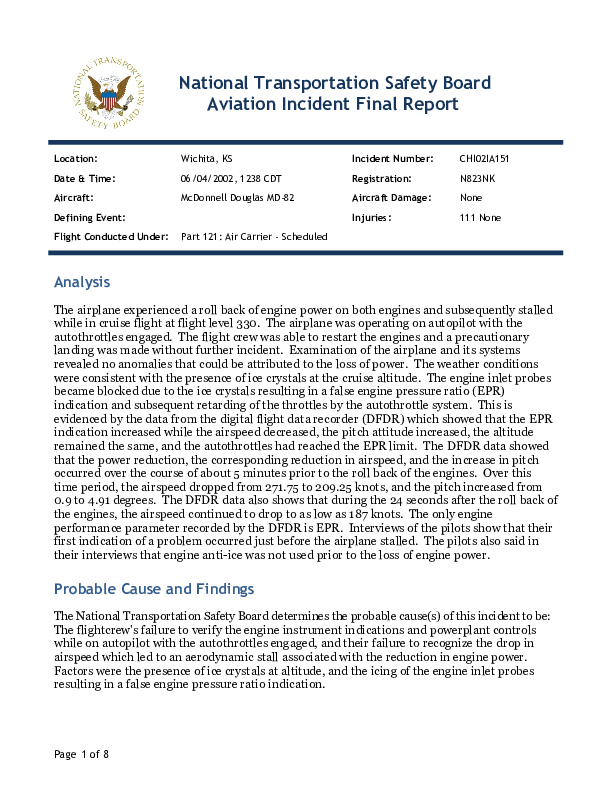 NTSB Identification: CHI02IA151, Final Report MD82 west of Wichita USA 4 June 02