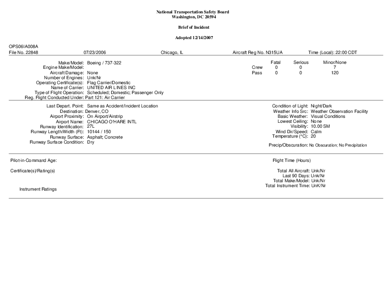 NTSB - OPS06IA008A B733/B477 Runway Incursion, Chicago O'Hare, 23 July 2006