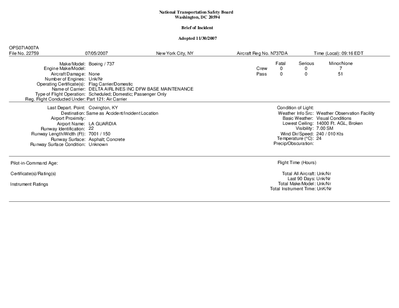 NTSB - OPS07IA007A Runway Incursion B738 / CRJ1, New York La Guardia USA 5 July 2007