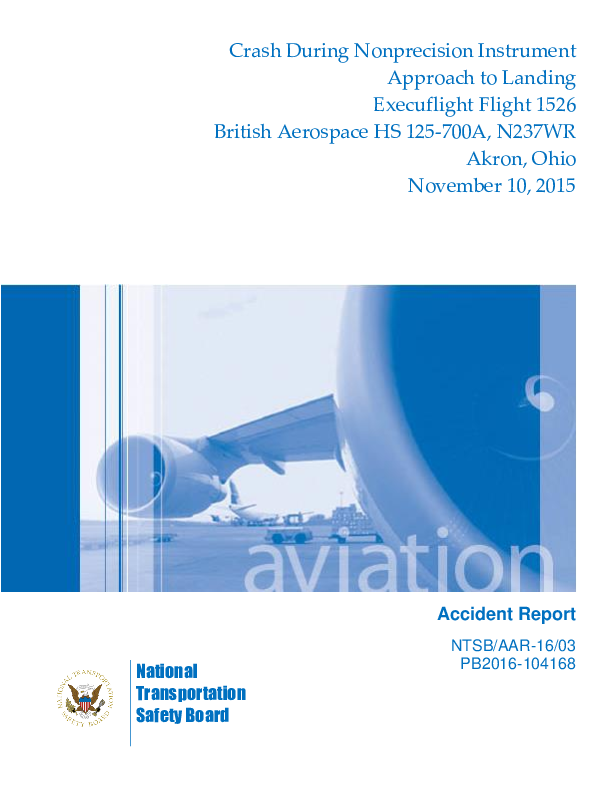 NTSB/AAR-16/03 H25B (N237WR) Flight 1526) crash vicinity Akron OH USA, 10 Nov 2015
