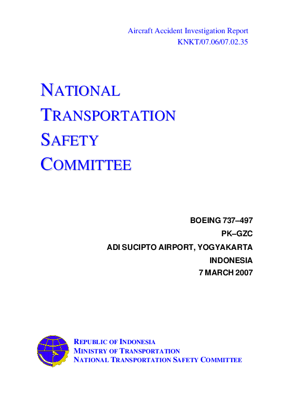 NTSC - KNKT/07.06/07.02.35, B734 Runway excursion, Yogyakarta, Indonesia, 7 Mar. 2007