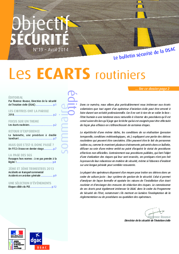 19th edition of DGAC/DSAC safety bulletin published in April 2014 titled Routine Deviations