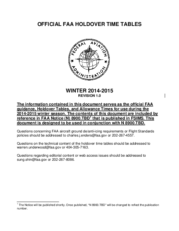 Official FAA Holdover Time Tables, Winter 2014-2015