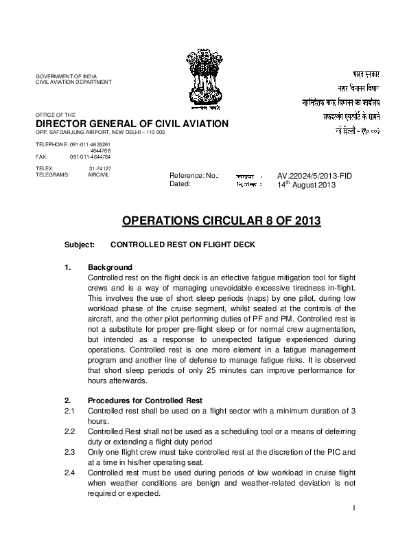 Operations Circular 8/2003 Controlled Rest of Flight Deck