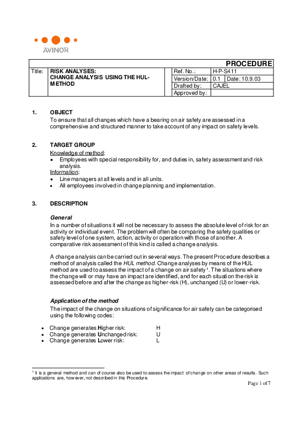 AVINOR’s approach is to ensure that all changes which have a bearing on air safety are assessed in a comprehensive and structured manner to take account of any impact on safety levels.