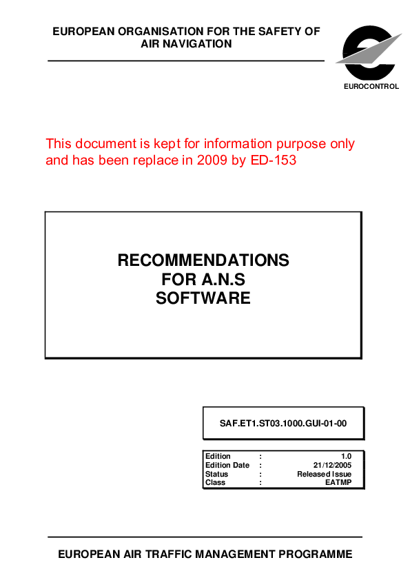 This annex provides a reference against which stakeholders can assess their own practices for software specification, design, development, operation, maintenance and decommissioning as well as recommendations on the major processes required to provide assurance for software in Air Navigation Systems. This annex provides recommendations on the major processes required to provide the appropriate level of safety and quality assurance for software in Air Navigation Systems.