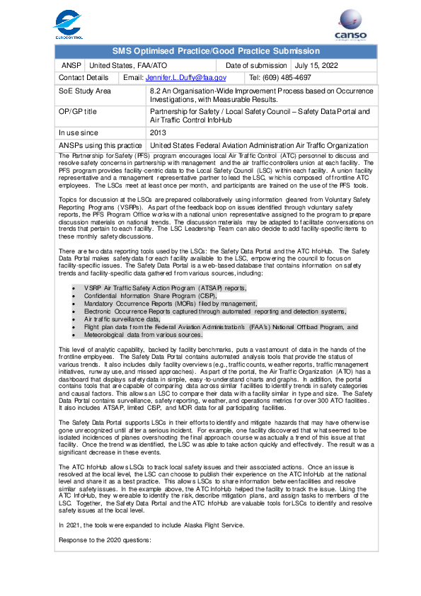 Partnership for Safety / Local Safety Council – Safety Data Portal and Air Traffic Control InfoHub