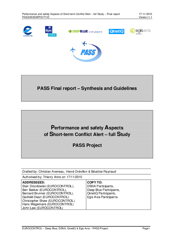 The purpose of the project was to study performance and safety aspects of STCA operations, including technical, procedural, and human performance issues and considerations of the interactions with ACAS. The project aimed at defining quantified safety and performance requirements for STCA and progressing with an overall concept of operations for compatible STCA and ACAS operations.