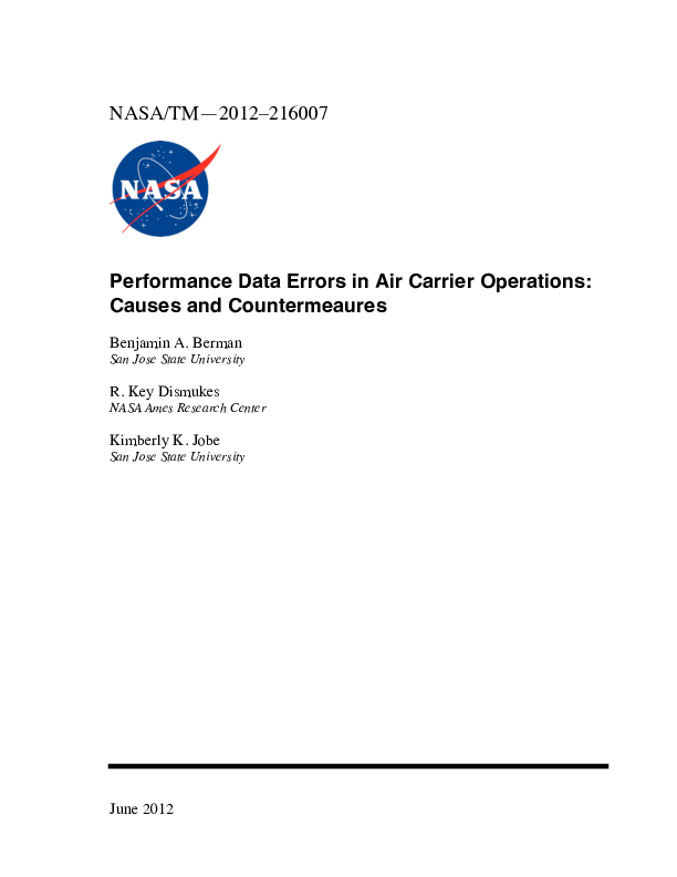 In this report we consider and extend four recent studies of performance data error, report our own study of ASRS-reported incidents, and provide a broad set of countermeasures that can reduce vulnerability to accidents caused by performance data errors. Performance data are generated through a lengthy process involving several employee groups and computer and/or paper-based systems. Although much of the airline industryâs concern has focused on errors that pilots make in entering flight managment system (FMS) data, we determined that errors occur at every stage of the process and that errors by ground personnel are probably at least as frequent and certainly as consequential as errors by pilots. Although relatively few major accidents have yet been caused by performance data errors, our study suggests that more accidents are likely to occur unless existing measures to prevent and catch these errors are improved and new measures developed.