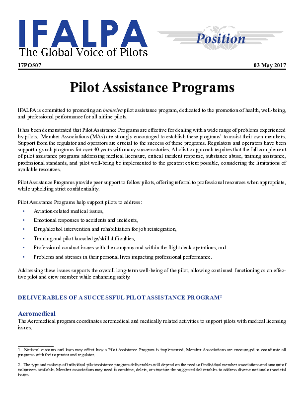 Pilot Assistance Programs