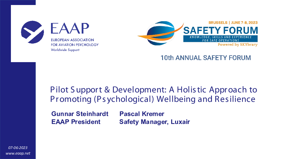 Pilot Support & Development: A Holistic Approach to Promoting (Mental) Wellbeing and Resilience, Gunnar Steinhardt (EAAP) & Pascal Kremer (Luxair)