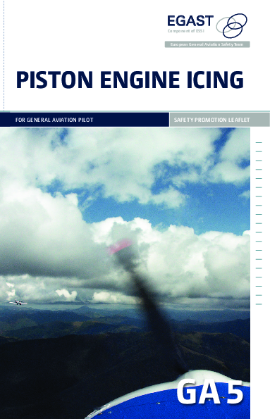 EGAST Safety Promotion Leaflet on induction system icing in piston engines is commonly referred to as carburettor icing’. Although that is only one form, such icing can occur at any time, even on warm days, particularly humid ones… If correct action is not taken, the engine may stop, especially at low power settings during approach. This leaflet is intended to assist pilots of carburetted piston engined aircraft operating below 10,000 feet by providing background information and a few practical tips.