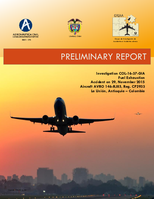 Preliminary Report RJ85 (CP 2933) vicinity Medellin International Rionegro Colombia, 29 Nov 2016