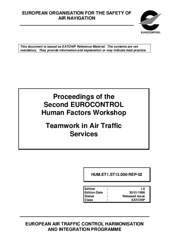 Proceedings of the Second EUROCONTROL Human Factors Workshop - Teamwork in Air Traffic Services