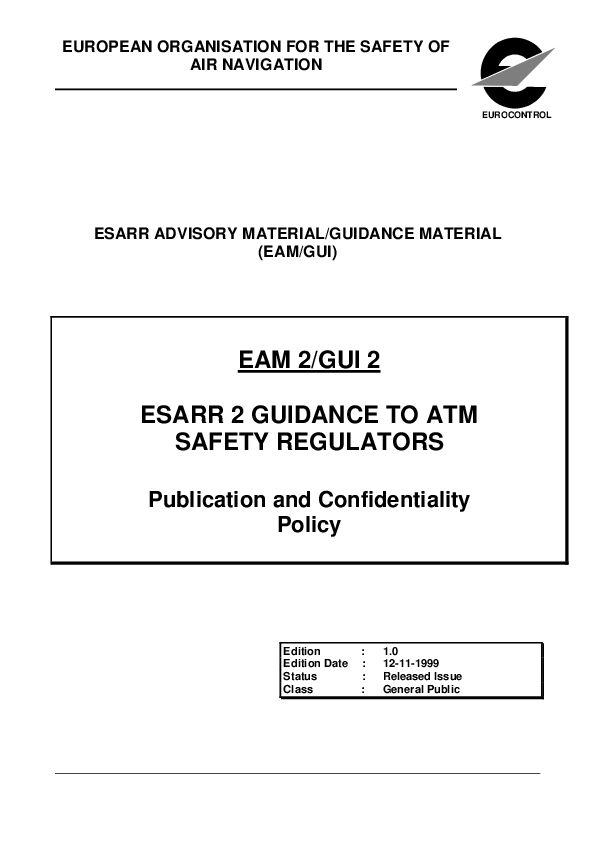 This EUROCONTROL confidentiality and publication policy aims at sharing and publishing safety information as well as at addressing confidentiality issues.