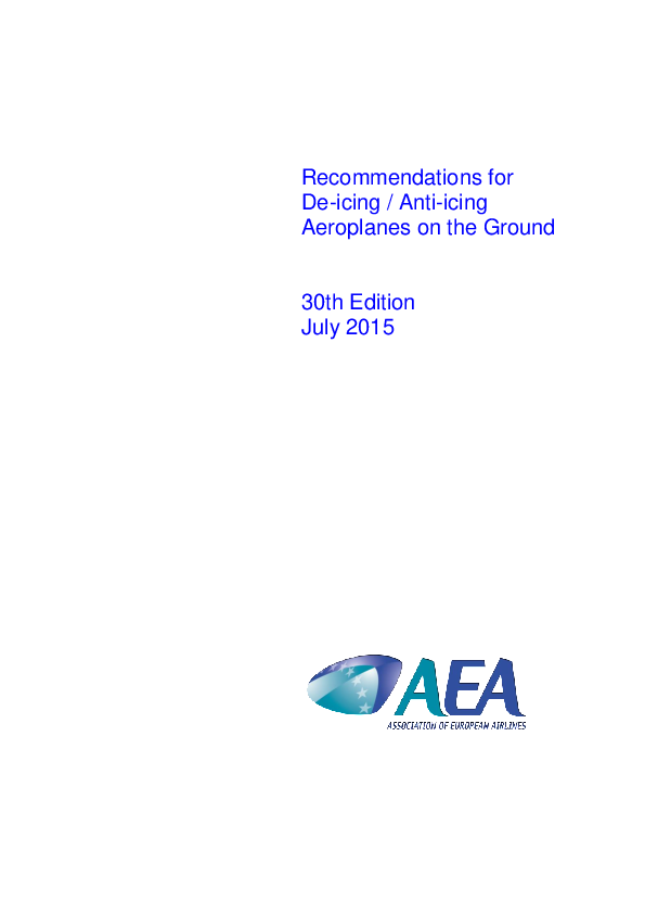 Recommendations for De-icing/Anti-icing Aeroplanes on the Ground. 30th Edition