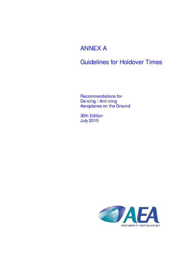 AEA Recommendations for De-icing/Anti-icing Aeroplanes on the Ground: Edition 30, Annex A - Guidelines for Holdover Times. HOT Tables