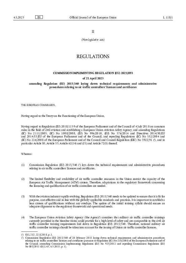 This Regulation updates various aspects of Regulation 2015/340 to ensure that it is fit for purpose, cost-effective and in line with the globally applicable standards and practices.