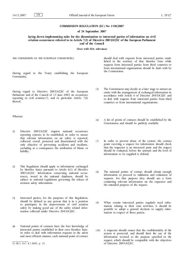 Regulation (EC) No 1330/2007 - laying down implementing rules for the dissemination to interested pa