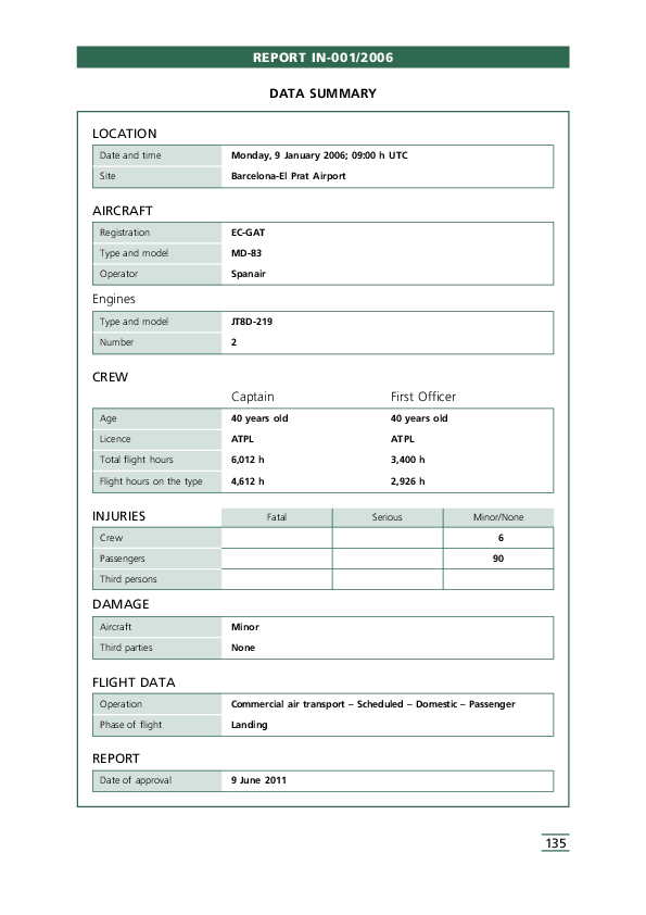 REPORT IN-001/2006, MD83 runway excursion, Barcelona Spain, 9 Jan. 2006